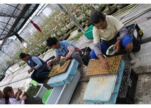そこで私たちは日本の文化を広めるべく活動し、中国への初の「皐月(さつき)」輸出に成功しました。2008年4月、初めて日本の1000本の「皐月(さつき)」が中国に上陸しました。さらに2009年3月800本の「皐月(さつき)」が輸出されました。今後「皐月(さつき)」の観賞法や手入れ法を伝授し、日本の文化を広める活動を続けていきます。