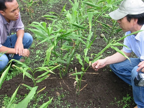 私たちは2002年からインドネシアで試験的に「みょうが」栽培を始めました。とくに「みょうが」は亜熱帯の気候に合っていると考えたからです。もちろん、それまでインドネシアに「みょうが」はありませんでした。日本から「みょうが」の根を運び、栽培技術を指導。インドネシアの新しい農業の開拓に期待しました。